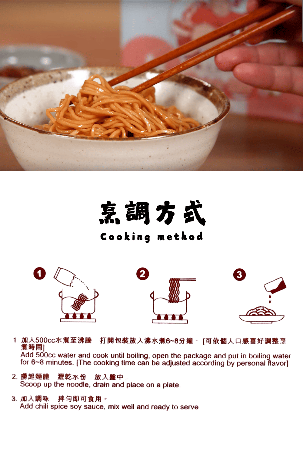 - 調味包成分:純釀造醬油、黃豆油、水、糖、鹽、